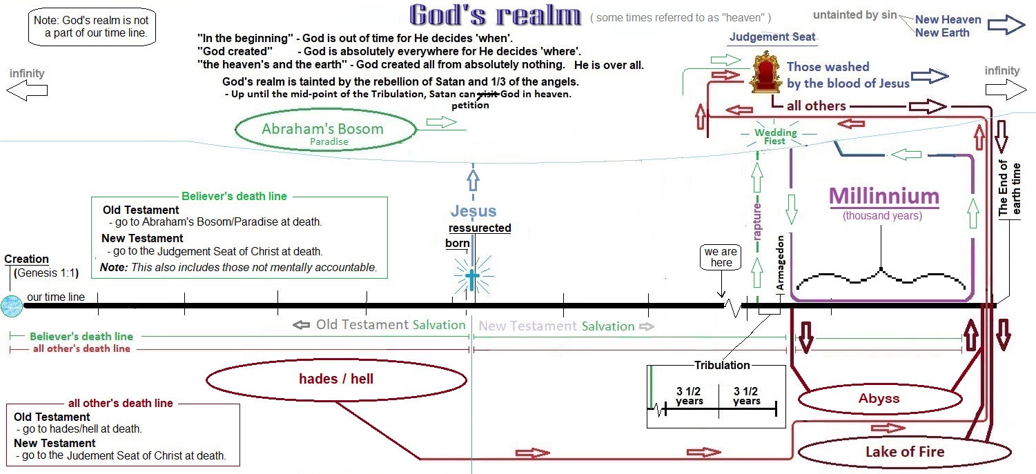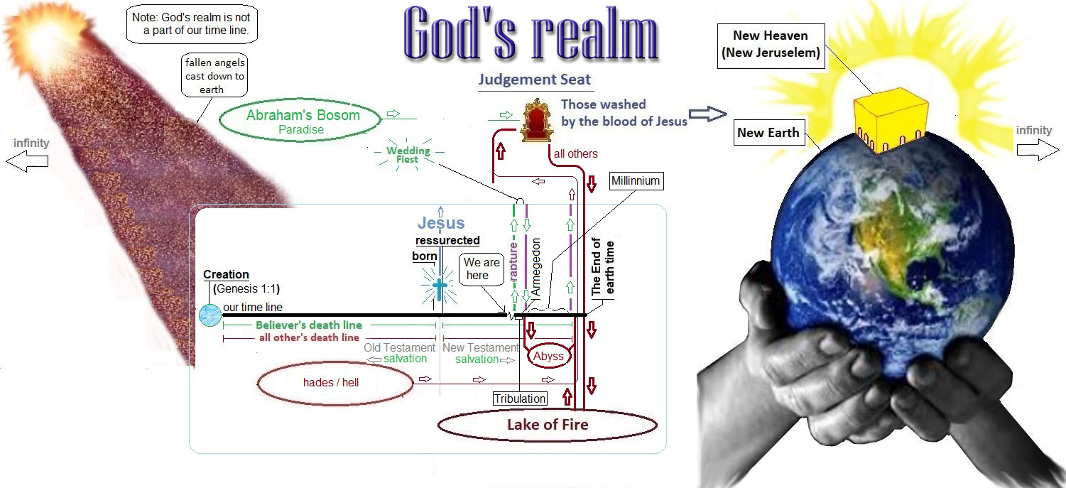 - Even though this diagram seems to depict God's realm having the same time line as our own, it does not. God's realm is not related to our earthly time line (2 Peter 3:8 "... With the Lord a day is like a thousand years, and a thousand years are like a day.").